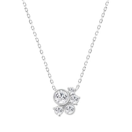 14K WHITE GOLD 1/2CT ROUND DIAMOND LADIES FLOWER PENDANT WITH CHAIN