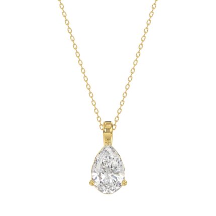 LADIES SOLITAIRE PENDANT WITH CHAIN 1CT PEAR DIAMOND 14K YELLOW GOLD