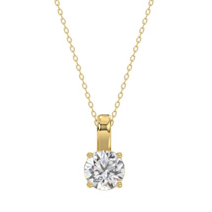 LADIES SOLITAIRE PENDANT WITH CHAIN 1CT ROUND DIAMOND 14K YELLOW GOLD (CENTER STONE ROUND DIAMOND 1CT )