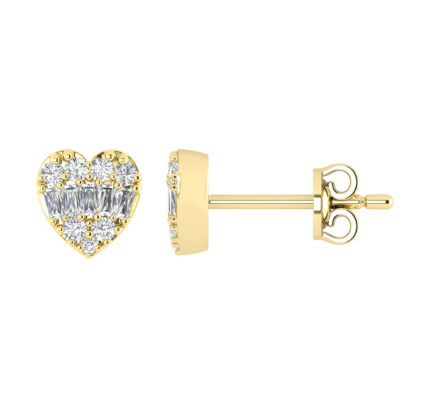 LADIES EARRINGS 0.25CT ROUND/BAGUETTE DIAMOND 14K YELLOW GOLD