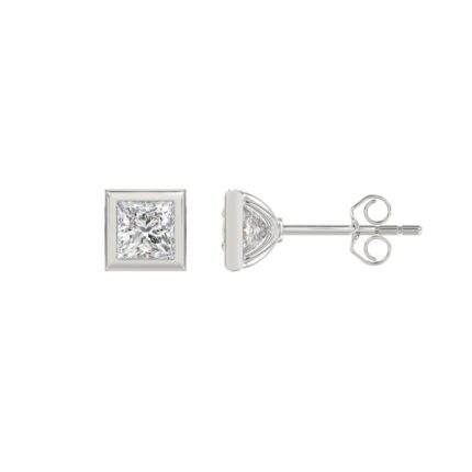 LADIES SOLITAIRE EARRINGS 1CT PRINCESS DIAMOND 14K WHITE GOLD