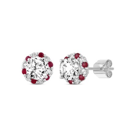 14K WHITE GOLD 2 1/2CT ROUND/RUBY DIAMOND LADIES EARRINGS (CENTER STONE ROUND DIAMOND 2CT)