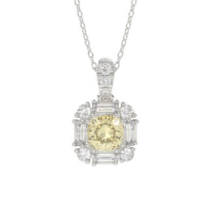14K WHITE GOLD CRAFTED WITH 18K YELLOW GOLD BACK PLATE 1 1/3CT ROUND/BAGUETTE/YELLOW CUSHION DIAMOND LADIES PENDANT WITH CHAIN