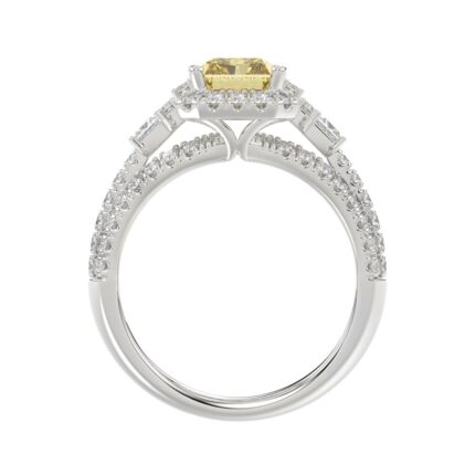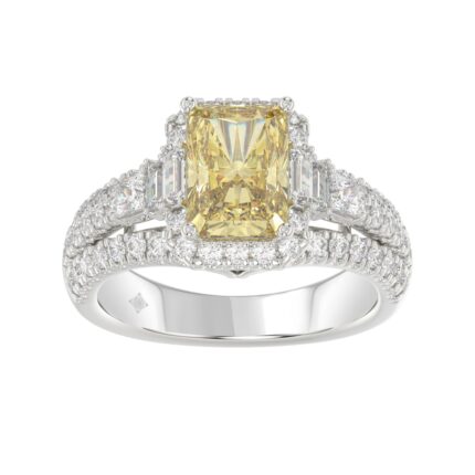 14K WHITE GOLD 3.00CT ROUND/BAGUETTE/YELLOW RADIANT DIAMOND LADIES RING (CENTER STONE RADIANT YELLOW DIAMOND 2.00CT)