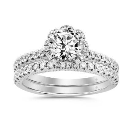 LADIES BRIDAL SET 1 1/2CT ROUND DIAMOND 14K WHITE GOLD