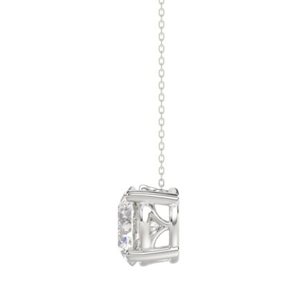 LADIES SOLITAIRE PENDANT WITH UNDER-PASS CHAIN 3CT ROUND DIAMOND 14K WHITE GOLD