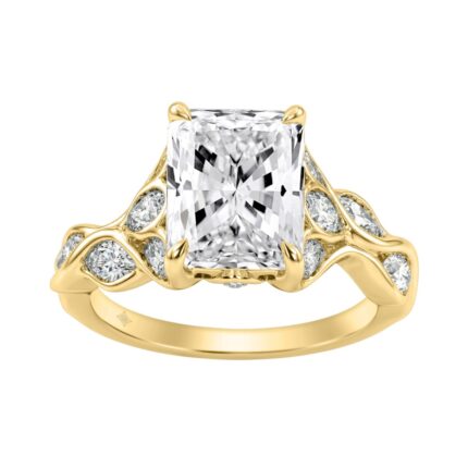 14K Yellow Gold Radiant Cut Diamond Ring 4 1/5Ct With Marquise Side Stones Ladies Engagement Ring 3Ct Radiant Center Stone (Color F-G -Clarity Vs1/Vs