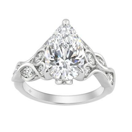 Luxury 14K White Gold Ladies Diamond Ring 2 3/4CT Round Pear & Baguette Diamonds with 2.00CT Pear Center stone (Color F-G -Clarity VS1/VS2)