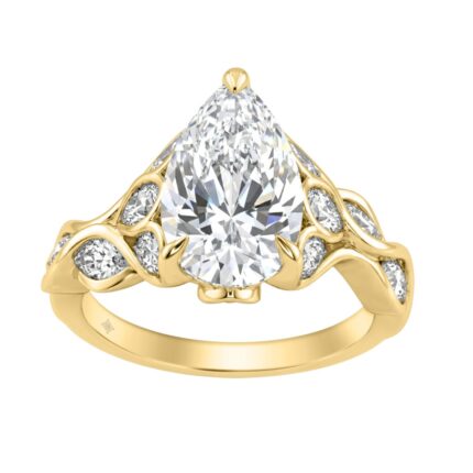 Luxury 14K Yellow Gold Ladies Diamond Ring 2 3/4CT Round Pear & Baguette Diamonds with 2.00CT Pear Center stone (Color F-G -Clarity VS1/VS2)