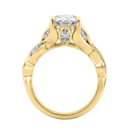Ladies 14K Yellow Gold 4 1/5Ct Multi-Shape Diamond Engagement Ring Round, Oval & Marquise With Side Stones 3Ct Oval Center Stone (Color F-G -Clari