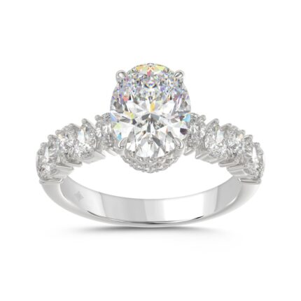 14K WHITE GOLD 2.00CT OVAL/ROUND DIAMOND LADIES RING (CENTER STONE OVAL DIAMOND 2CT)