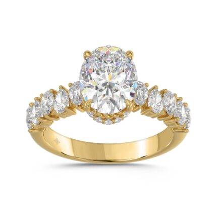 14K YELLOW GOLD 2 3/4CT ROUND/OVAL/PEAR DIAMOND LADIES RING (CENTER STONE OVAL DIAMOND 2CT)