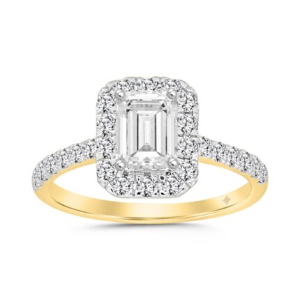 LADIES RING 1 1/2CT ROUND/EMERALD DIAMOND 14K YELLOW GOLD (CENTER STONE EMERALD DIAMOND 1CT)