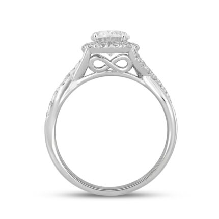 LADIES RING 1 1/2CT ROUND/PEAR DIAMOND 14K WHITE GOLD (CENTER STONE PEAR DIAMOND 1CT)