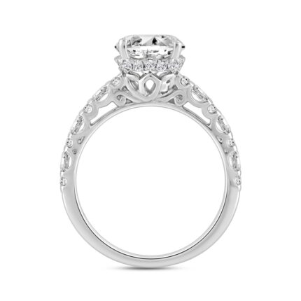LADIES RING 2.50CT ROUND/BAGUETTE DIAMOND 14K WHITE GOLD (CENTER STONE ROUND DIAMOND 2.00CT)