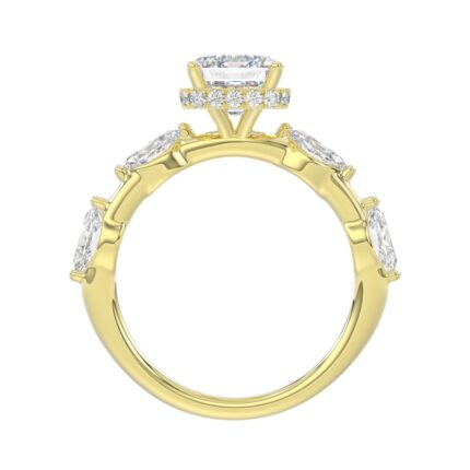 LADIES RING 3.50CT ROUND/MARQUISE/EMERALD DIAMOND 14K YELLOW GOLD (CENTER STONE EMERALD DIAMOND 3.00CT)