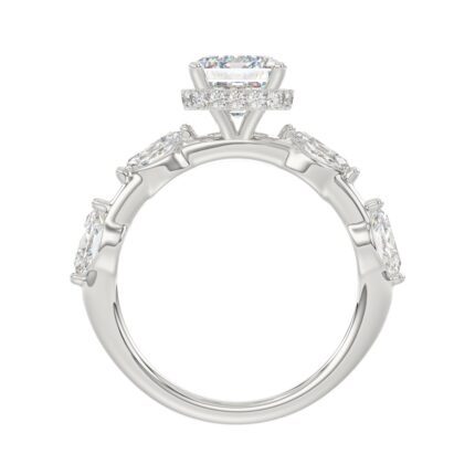 LADIES RING 3.50CT ROUND/MARQUISE/EMERALD DIAMOND 14K WHITE GOLD (CENTER STONE EMERALD DIAMOND 3.00CT)