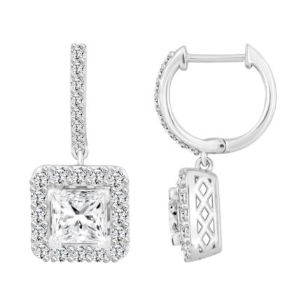 LADIES EARRINGS 3CT PRINCESS/ROUND DIAMOND 14K WHITE GOLD (CENTER STONE PRINCESS DIAMOND 2CT )
