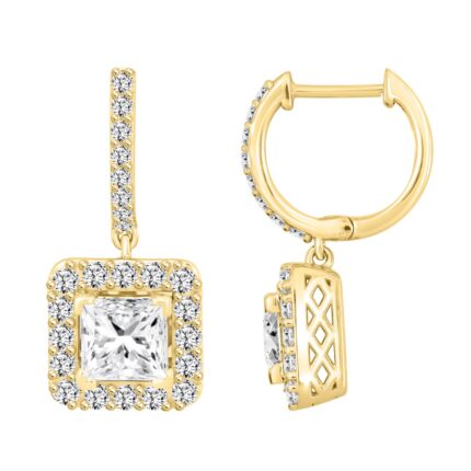 LADIES EARRINGS 3CT PRINCESS/ROUND DIAMOND 14K YELLOW GOLD (CENTER STONE PRINCESS DIAMOND 2CT )