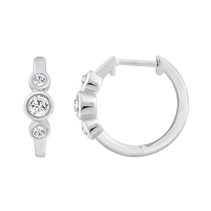 MEN’S HOOPS EARRINGS 0.20CT ROUND DIAMOND 10K WHITE GOLD