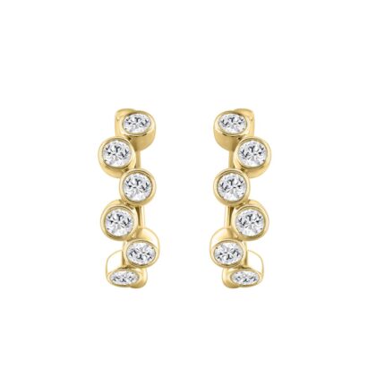 LADIES HOOP EARRINGS 0.50CT ROUND DIAMOND 10K YELLOW GOLD