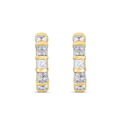 LADIES HOOPS EARRINGS EARRINGS 3/4CT ROUND/PRINCESS DIAMOND 14K YELLOW GOLD
