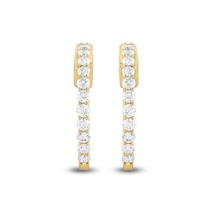 LADIES HOOP EARRINGS 1 3/4CT ROUND DIAMOND 14K YELLOW GOLD