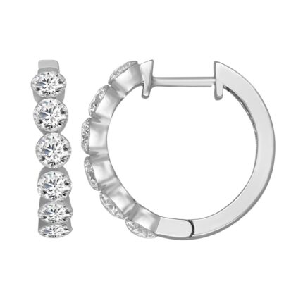 LADIES HOOP EARRINGS 1.00CT ROUND DIAMOND 10K WHITE GOLD