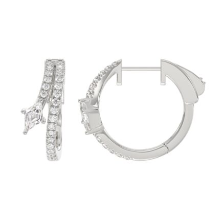 LADIES HOOP EARRINGS 1CT ROUND DIAMOND 14K WHITE GOLD