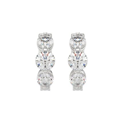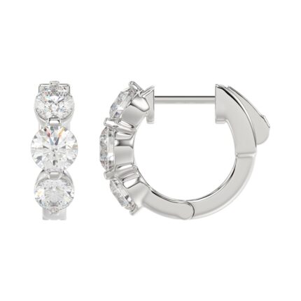 LADIES HOOP EARRINGS 1 3/4CT ROUND DIAMOND 14K WHITE GOLD