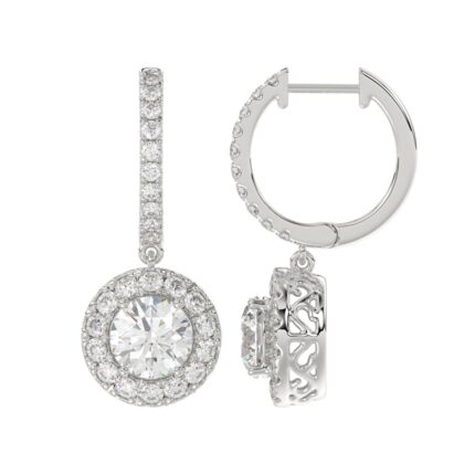 LADIES HOOP EARRINGS 1 1/2CT ROUND DIAMOND 14K WHITE GOLD