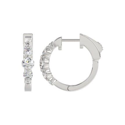 LADIES HOOPS EARRING 1.00CT ROUND DIAMOND 14K WHITE GOLD