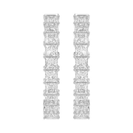 LADIES HOOP EARRINGS 5CT PRINCESS DIAMOND 14K WHITE GOLD