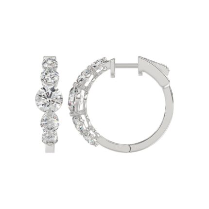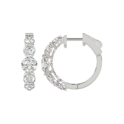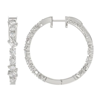 LADIES IN/OUT HOOP EARRINGS 2.00CT ROUND DIAMOND 14K WHITE GOLD (SI QUALITY)