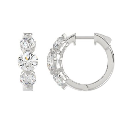 LADIES HOOP EARRINGS 7CT ROUND DIAMOND 14K WHITE GOLD