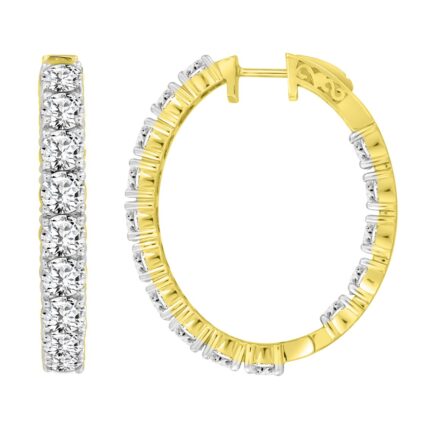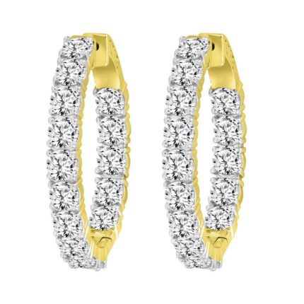 LADIES HOOPS EARRING 3.50CT ROUND DIAMOND 14K YELLOW GOLD IN OUT