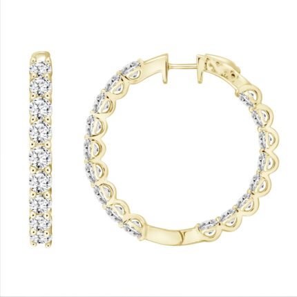 LADIES HOOPS EARRING 3.50CT ROUND DIAMOND 14K YELLOW GOLD IN OUT
