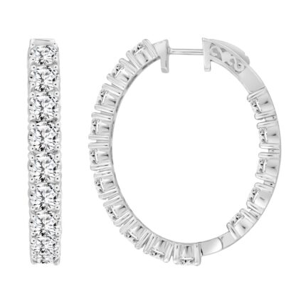 LADIES HOOPS IN/OUT EARRINGS 3.50CT ROUND DIAMOND 14K WHITE GOLD
