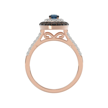 LADIES RING 0.55CT ROUND/BLUE SAPPHIRE/DARK BROWN DIAMOND 14K ROSE GOLD