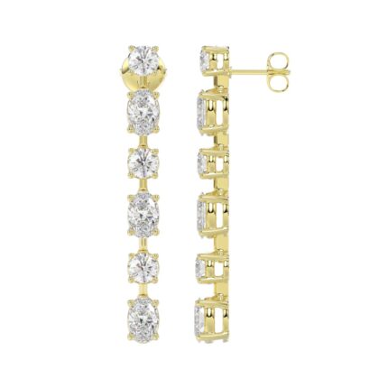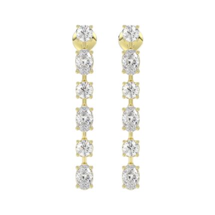 LADIES LINEAR EARRINGS 4 1/2CT OVAL/ROUND DIAMOND 14K YELLOW GOLD