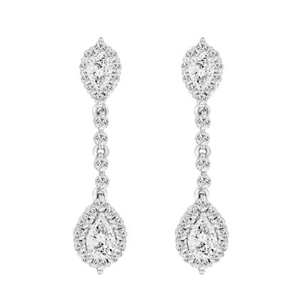 LADIES LINEAR EARRINGS 2 3/4CT PEAR/ROUND DIAMOND 14K WHITE GOLD (CENTER STONE PEAR DIAMOND 1CT )