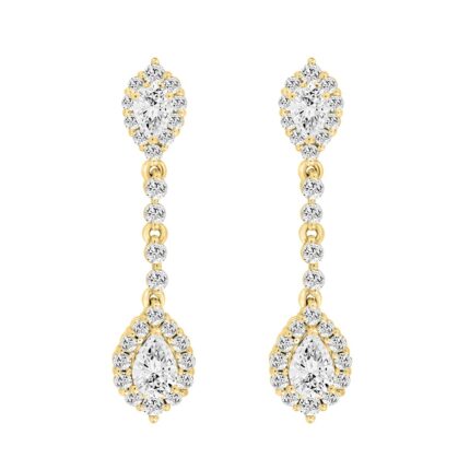 LADIES LINEAR EARRINGS 2 3/4CT PEAR/ROUND DIAMOND 14K YELLOW GOLD (CENTER STONE PEAR DIAMOND 1CT )