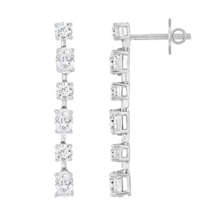 LADIES LINEAR EARRINGS 4 1/2CT OVAL/ROUND DIAMOND 14K WHITE GOLD