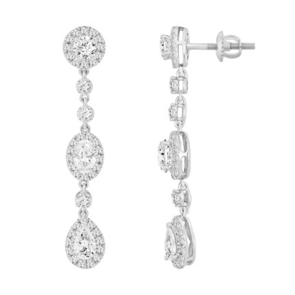 LADIES LINEAR EARRINGS 3 1/2CT OVAL/ROUND/PEAR DIAMOND 14K WHITE GOLD