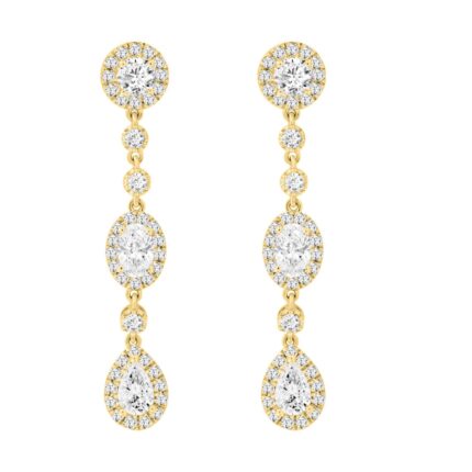 LADIES LINEAR EARRINGS 3 1/2CT OVAL/ROUND/PEAR DIAMOND 14K YELLOW GOLD