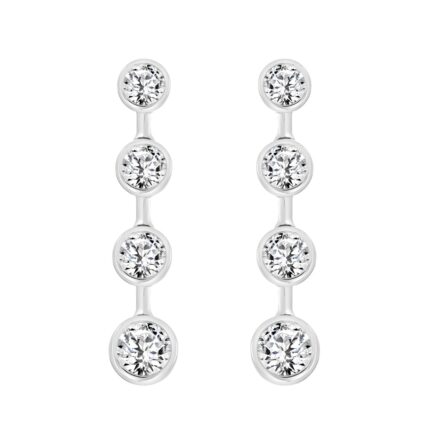 LADIES LINEAR EARRINGS 2CT ROUND DIAMOND 14K WHITE GOLD