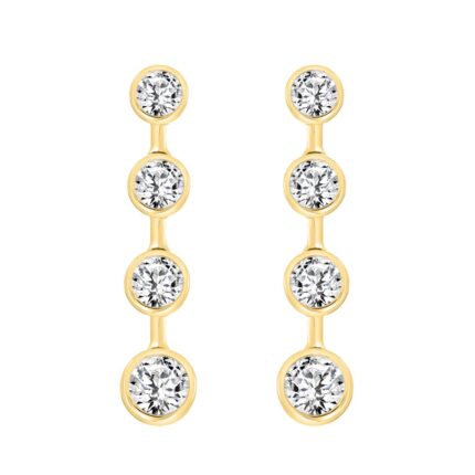 LADIES LINEAR EARRINGS 2CT ROUND DIAMOND 14K YELLOW GOLD