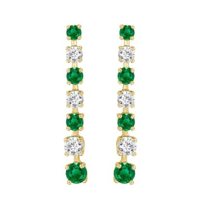 LADIES LINEAR EARRINGS 3CT ROUND DIAMOND 14K YELLOW GOLD