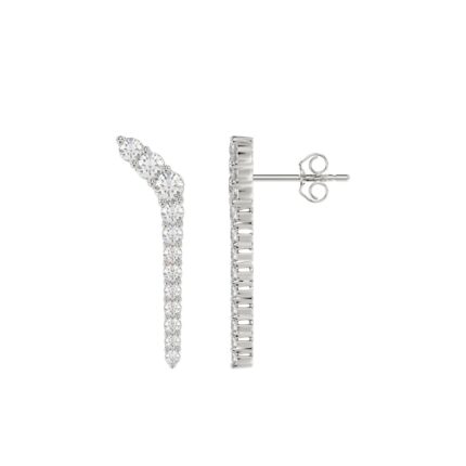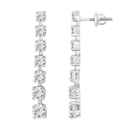 LADIES LINEAR EARRINGS 3CT ROUND DIAMOND 14K WHITE GOLD