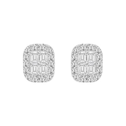 14K WHITE GOLD 1 1/2CT ROUND/EMERALD DIAMOND MEN’S EARRINGS